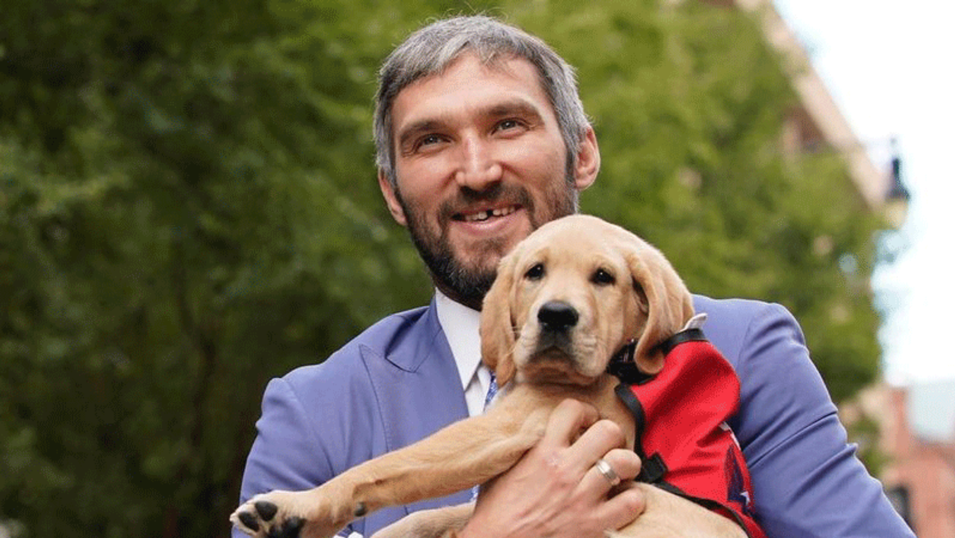 © Фото : Пресс-служба клуба "Вашингтон Кэпиталз"Александр Овечкин с лабрадором-ретривером по кличке Капитан.